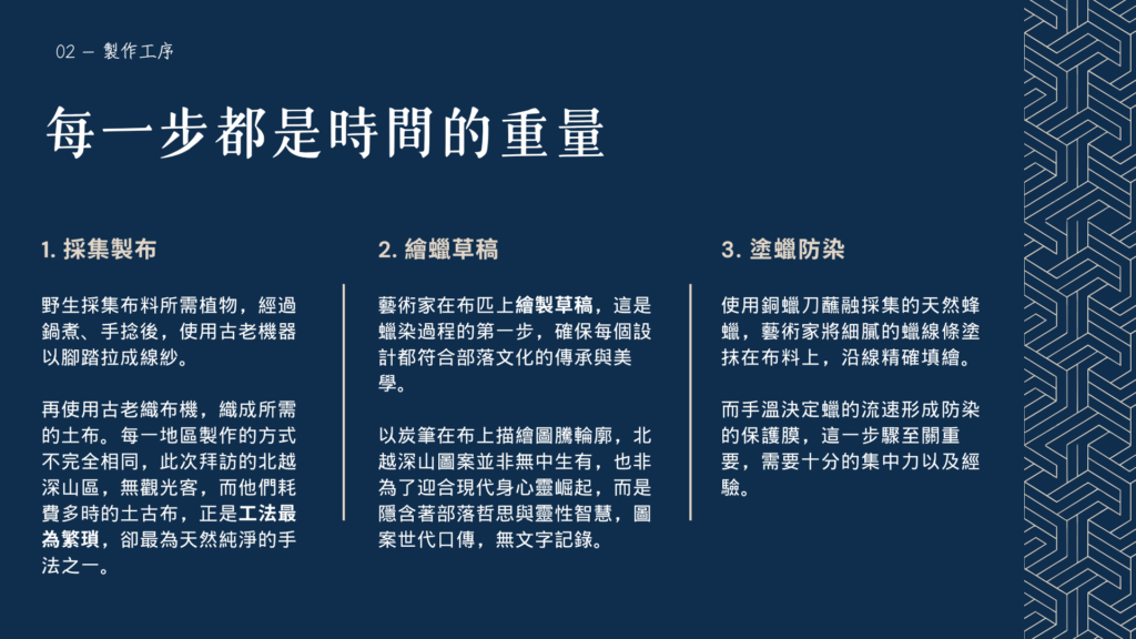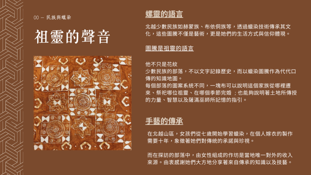每一位北越深山區Batik工藝者都是充滿力量的女性、都是被部落教導符號象徵、都是被傳授靈魂記憶的巫