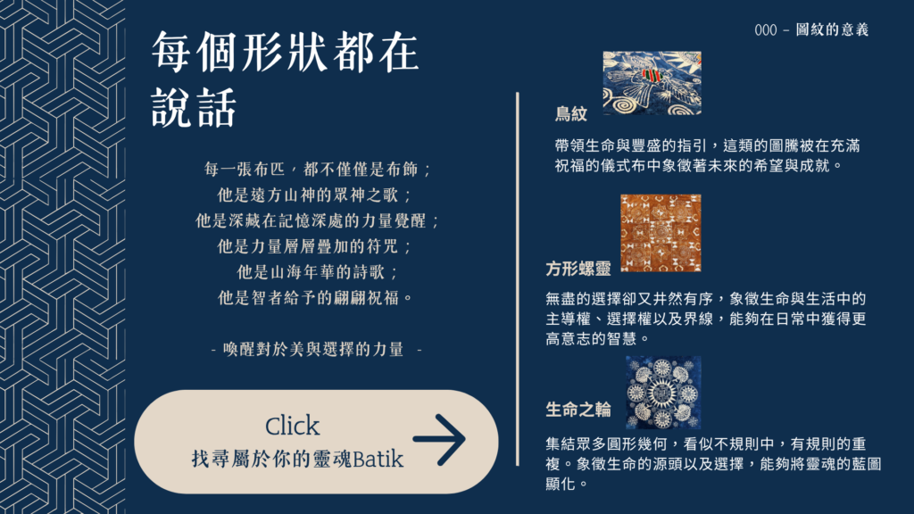 而在創作Batik,不是用感覺或是氛圍去勾勒出神秘圖騰的