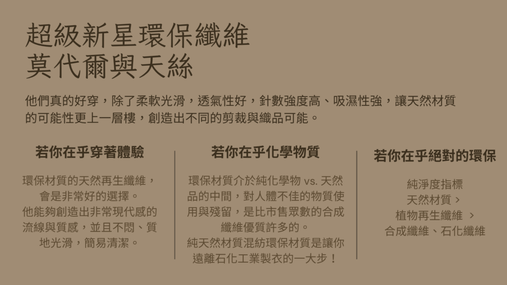 因此,在購買衣物與織品時,你是將他的材質擺在第一順位的嗎?
