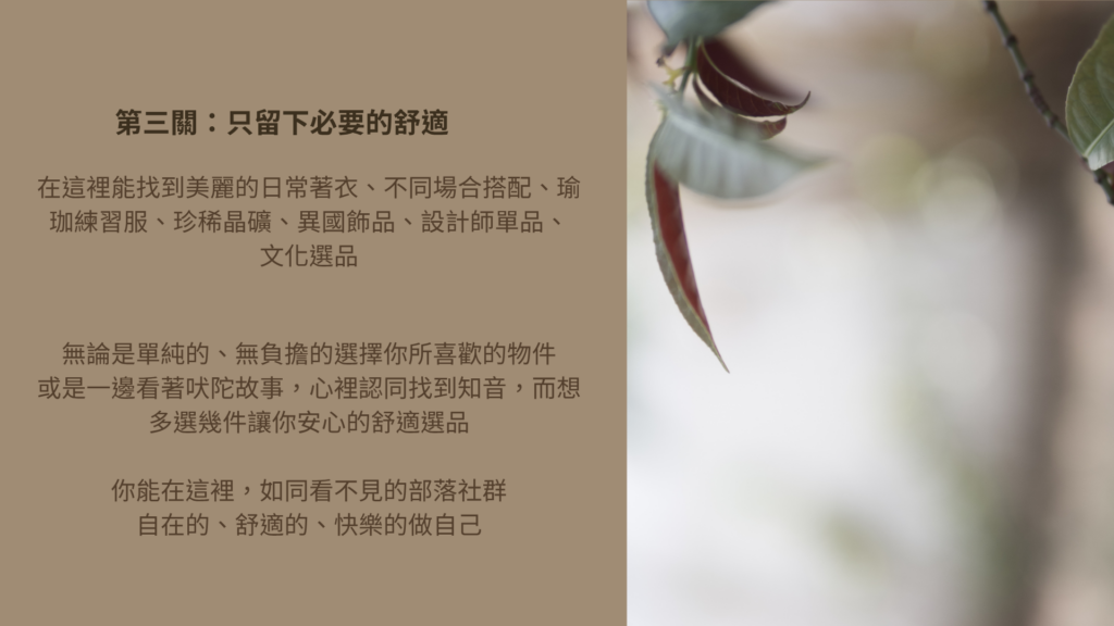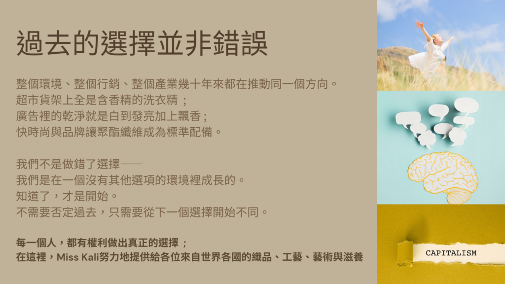 當初在這一個過程,我也不容易。要從有個性的辣衣、高級的香水還有護髮品轉為天然材質與植物時,就像是自己的習慣大轉彎,但是,這並非一刀切斷、大刀闊斧的重生,而是滴水穿石、一步步反轉的再生。