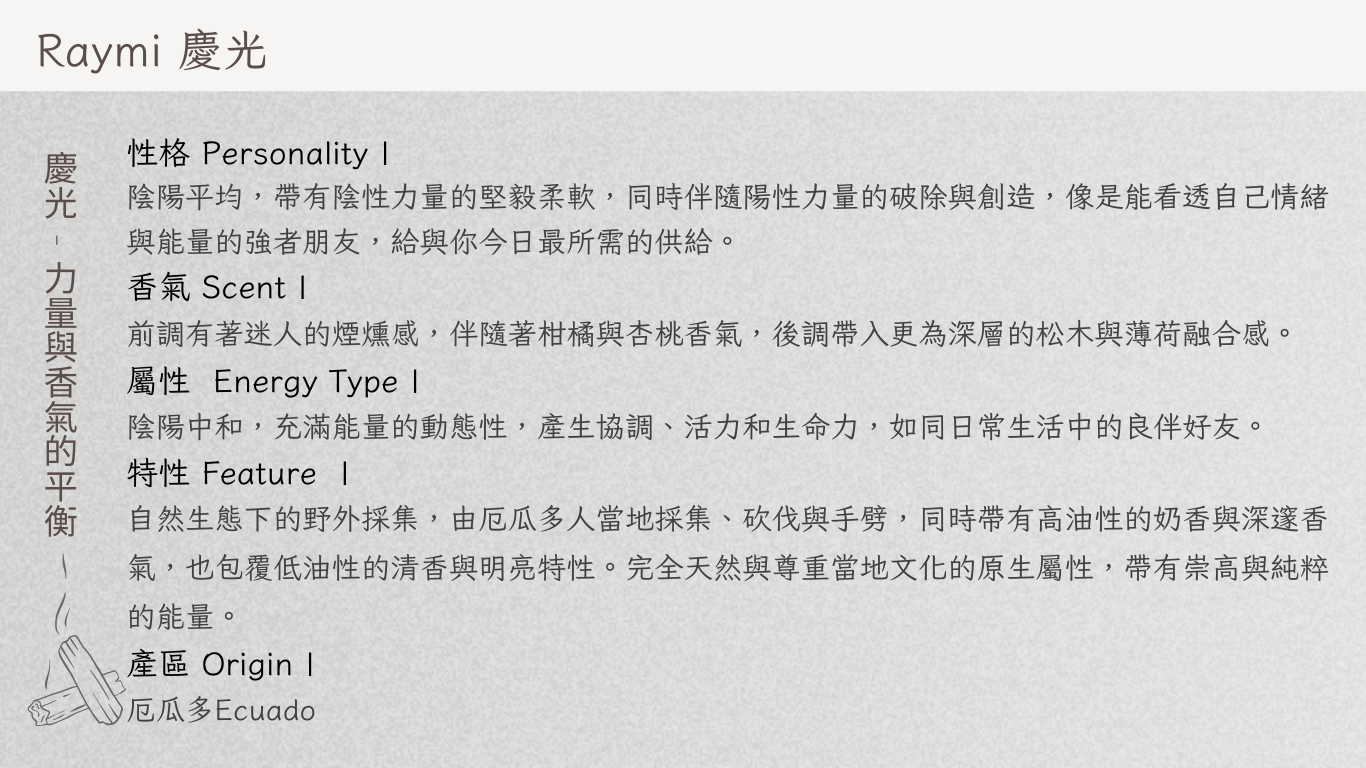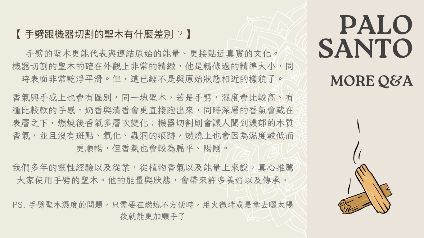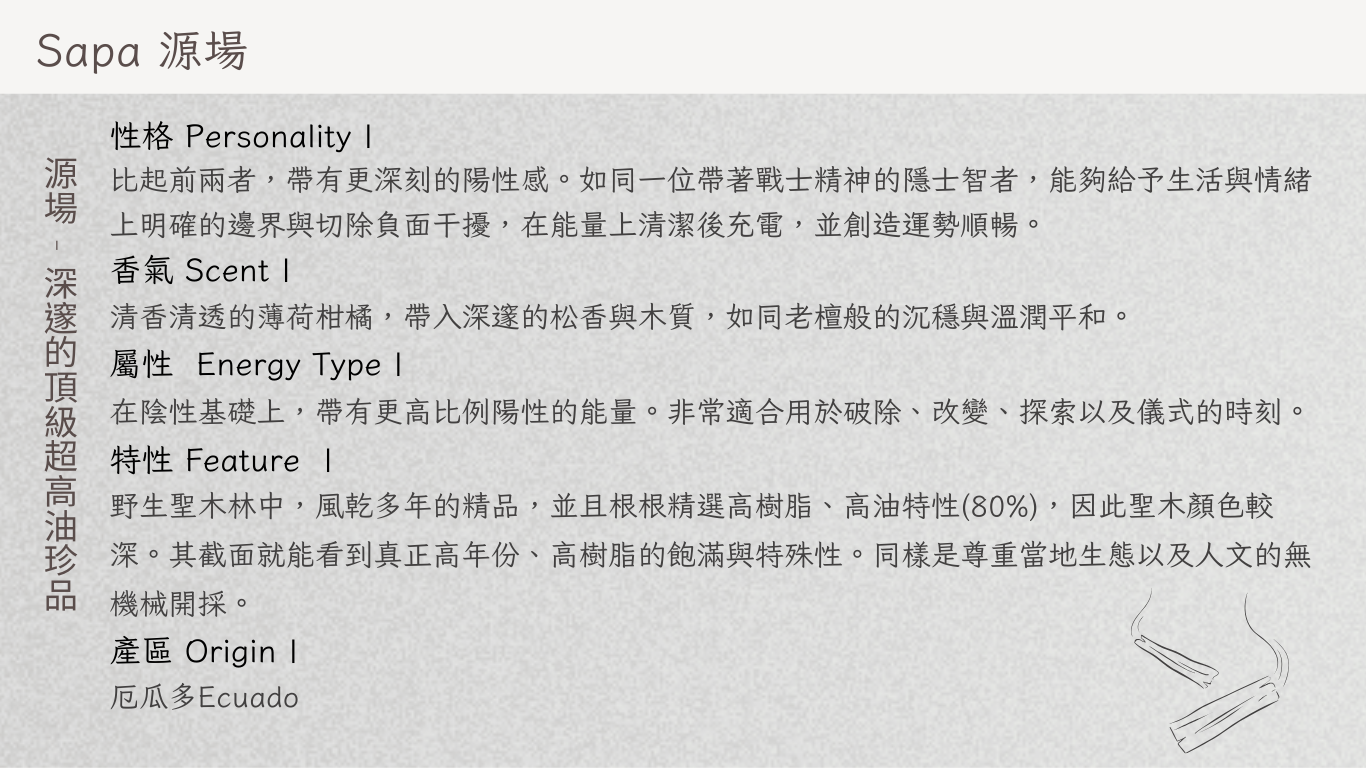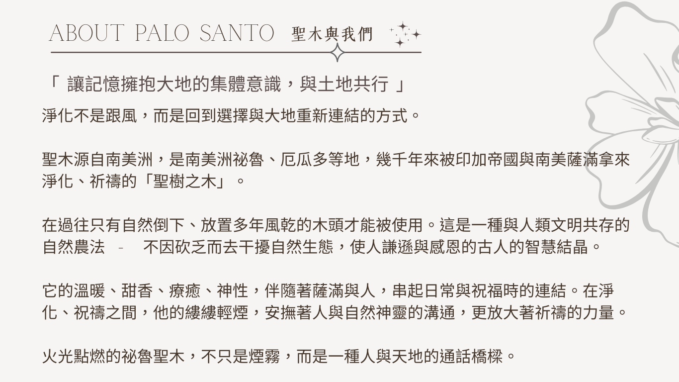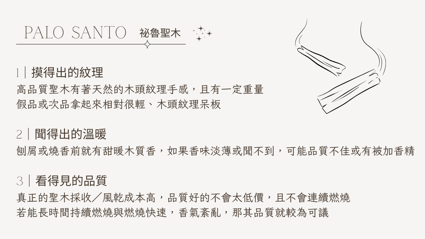 點燃聖木,享受裊裊輕煙 ; 感受品質所帶來的寧靜與愉悅