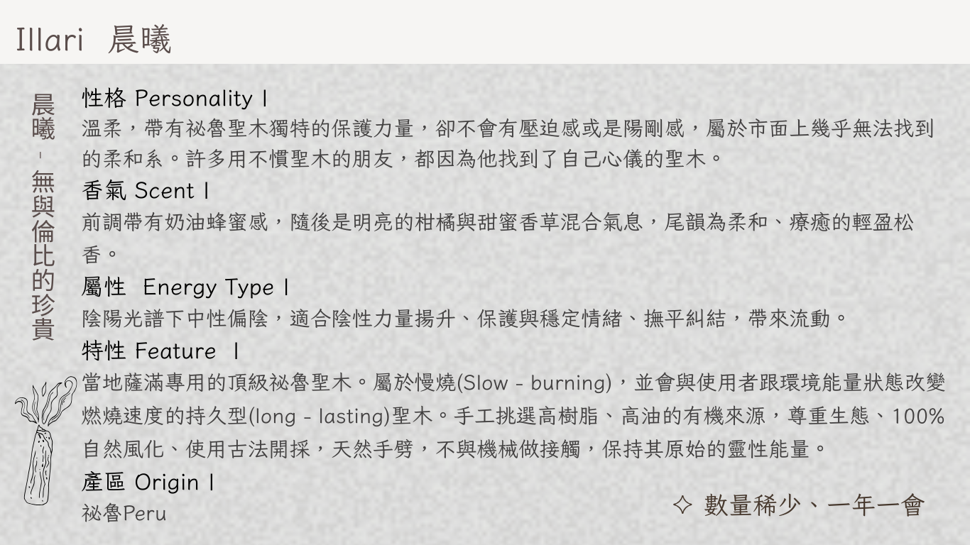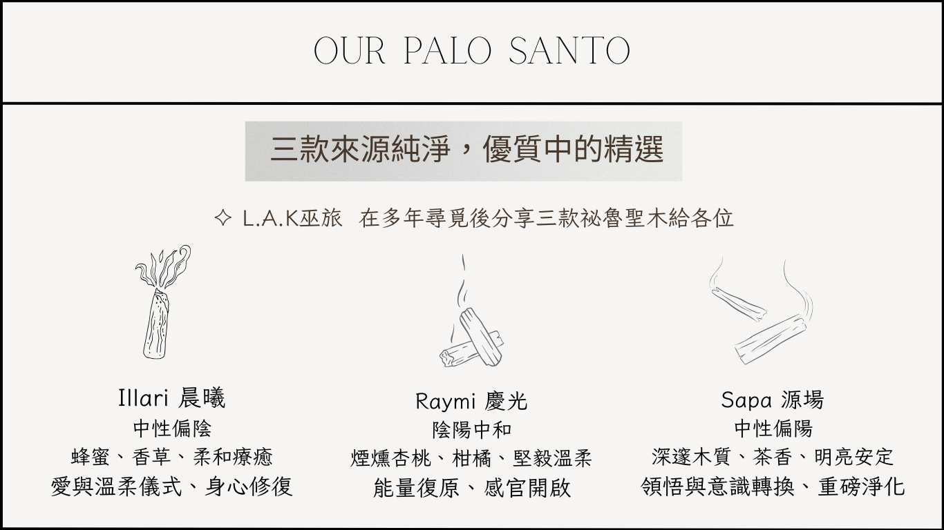 在認識我們特殊的三款聖木 – Illair晨曦、Raymi慶光、Sapa源場前,我們一同來深入認識祕魯聖木吧 !